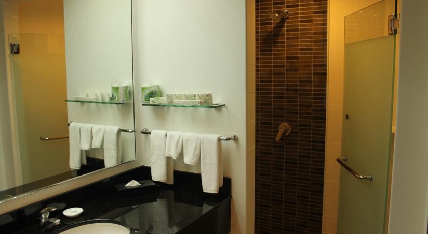يوجد بالغرفة حمام داخلي معقم ومطهر ويحتوي على فوطة جديدة وروب للاستحمام وجميع الأدوات الخاصة بالاستحمام، بالإضافة إلى دوش وحوض للاستحمام، وصابون.