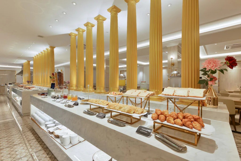 لايمكن التنبه عن الافطار المقدم فهذا يعود على كل فندق ماذا لازم يقدم، ولكن بشكل عام فأن الفنادق ذات المستويات 5 و 4 نجوم فهما يقدمون أكلات عالمية تناسب كل الجنسيات وجميع الفئات